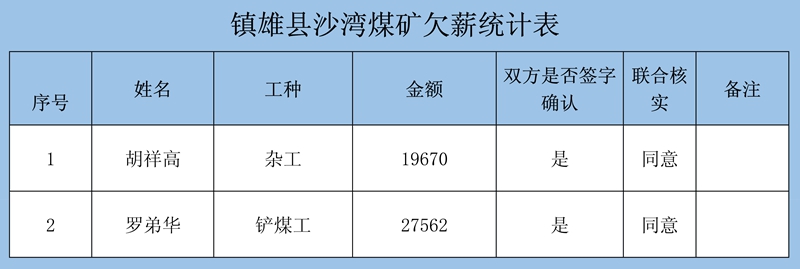 四、沙灣煤礦欠薪復(fù)核確認(rèn)情況