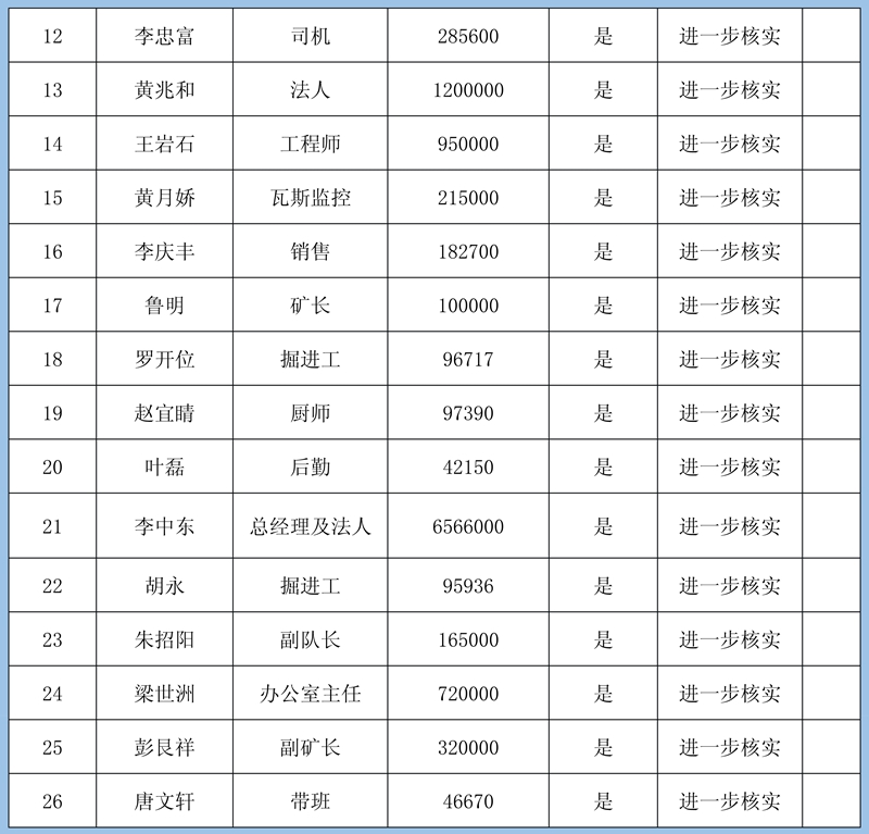 3、其他情況:煤礦方簽字認(rèn)可的216條欠薪申報,均持有煤礦方開出的工資欠條(蓋章)或是法院判決書等相關(guān)依據(jù),實際用工情況無法核實。