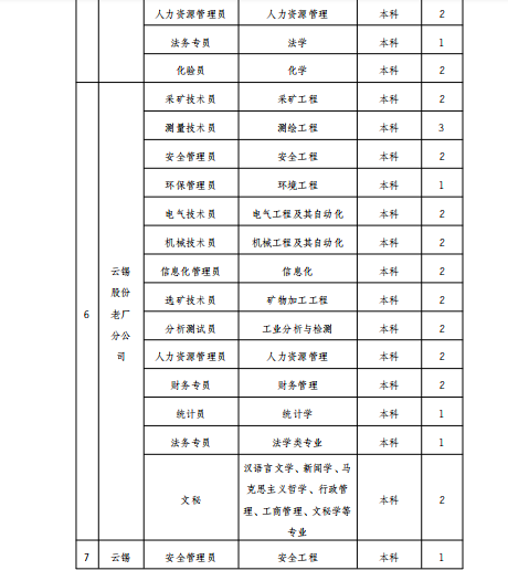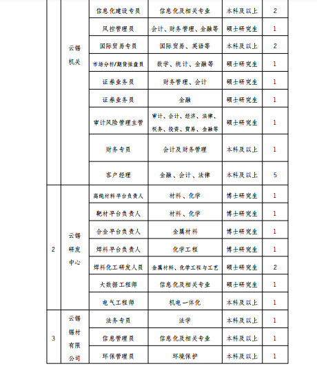 云南錫業(yè)集團(tuán)(控股)有限責(zé)任公司2020年招聘公告