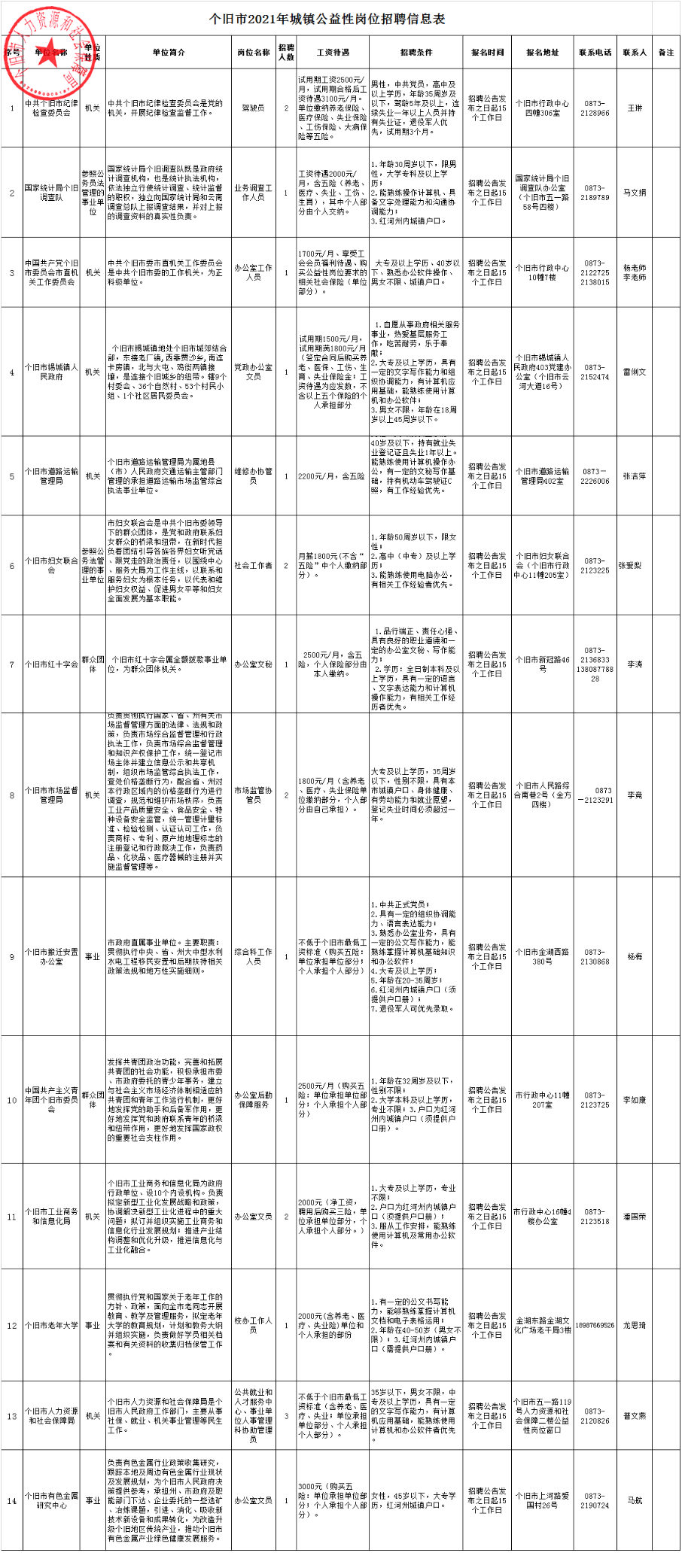 附件:個(gè)舊市2021年城鎮(zhèn)公益性崗位招聘信息表.xlsx(下載附件表格或點(diǎn)擊下方信息表圖片查看)
