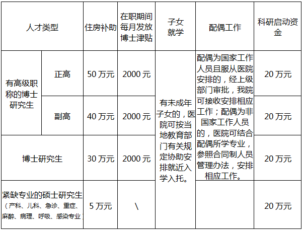 按國家有關(guān)政策管理和享受相關(guān)待遇外,并按醫(yī)院有關(guān)規(guī)定享受引進高層次人才待遇,具體如下: