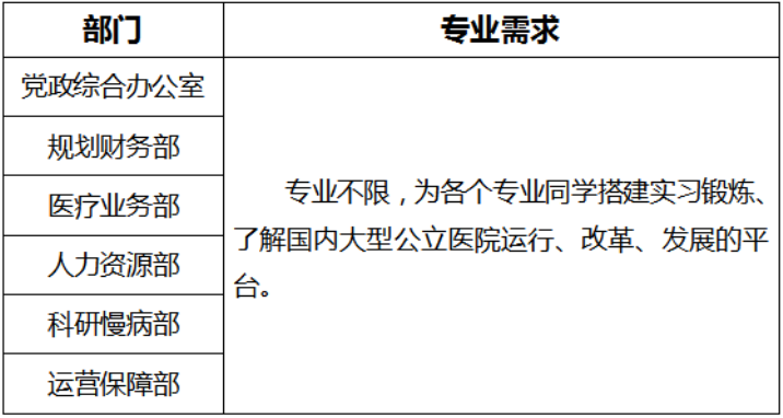 (一)實(shí)習(xí)部門和專業(yè)需求(每人可申報2個部門)