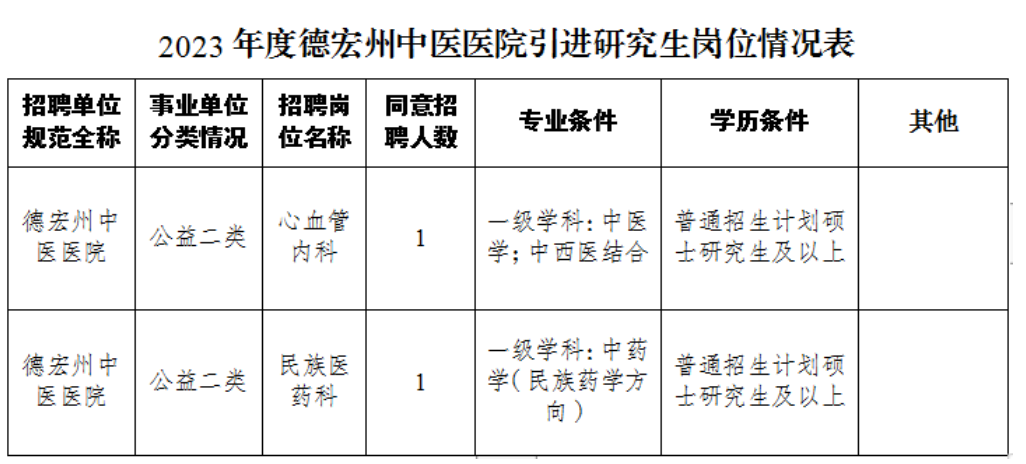 德宏州中醫(yī)醫(yī)院2023年公開引進(jìn)研究生公告