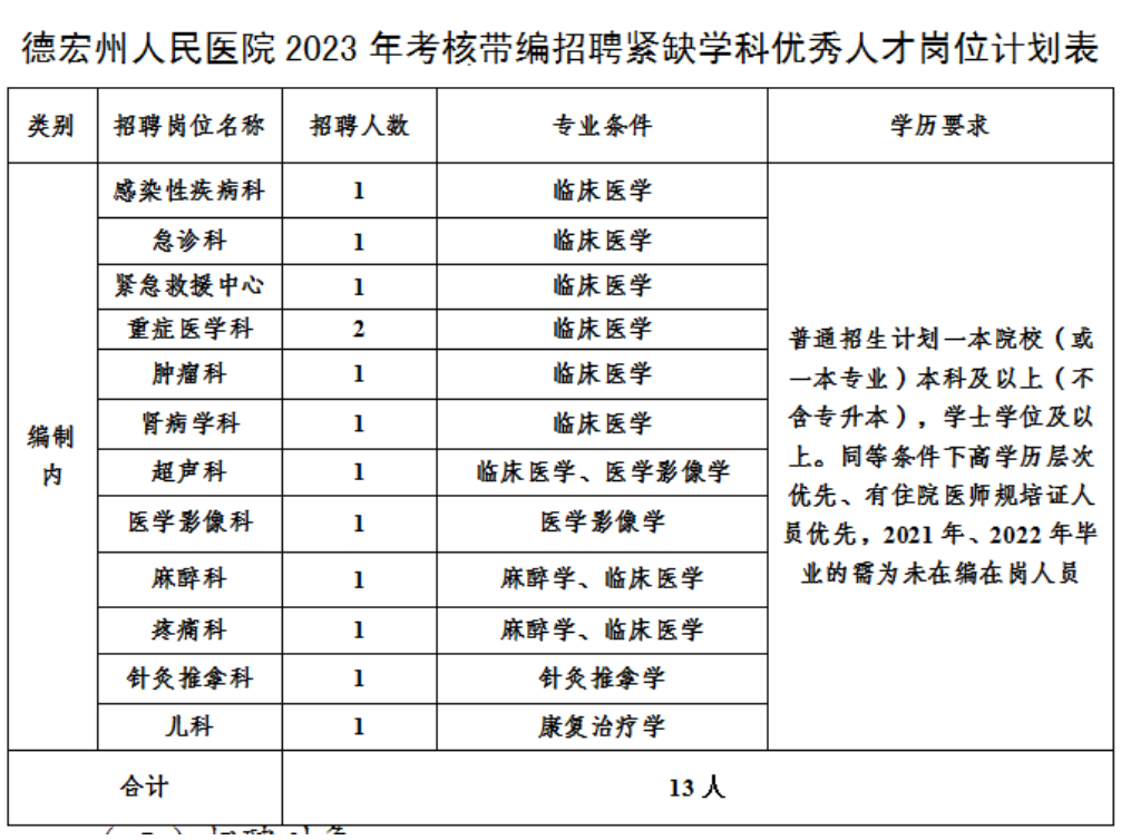德宏州人民醫(yī)院2023年考核招聘緊缺專業(yè)學(xué)科優(yōu)秀人才公告