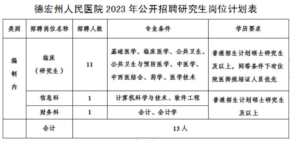 德宏州人民醫(yī)院2023年公開(kāi)招聘研究生公告