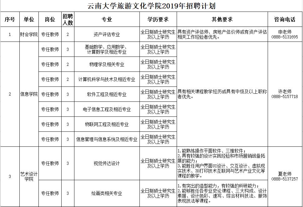 附件:云南大學(xué)旅游文化學(xué)院2019年招聘計劃 2019.3.15