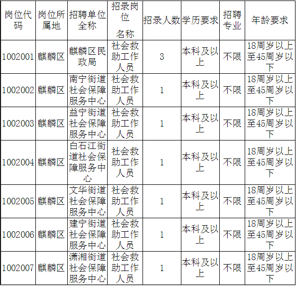 3.社會救助工作人員是“統(tǒng)一招聘、統(tǒng)一管理,麒麟?yún)^(qū)民政局使用”的政府購買服務(wù)人員,必須服從麒麟?yún)^(qū)民政局的統(tǒng)一管理和使用。