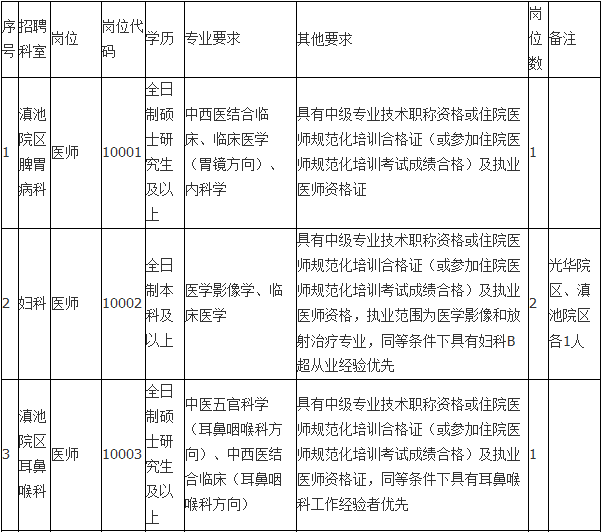 云南省中醫(yī)醫(yī)院2019年第一次急需崗位編制外(勞務派遣)人員招聘啟事
