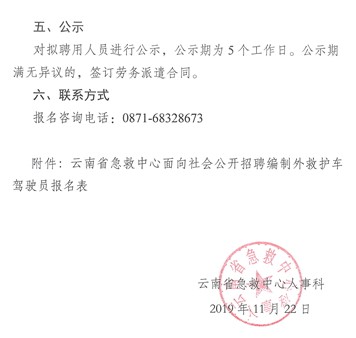 2019年云南省急救中心面向社會公開招聘編制外救護車駕駛員公告