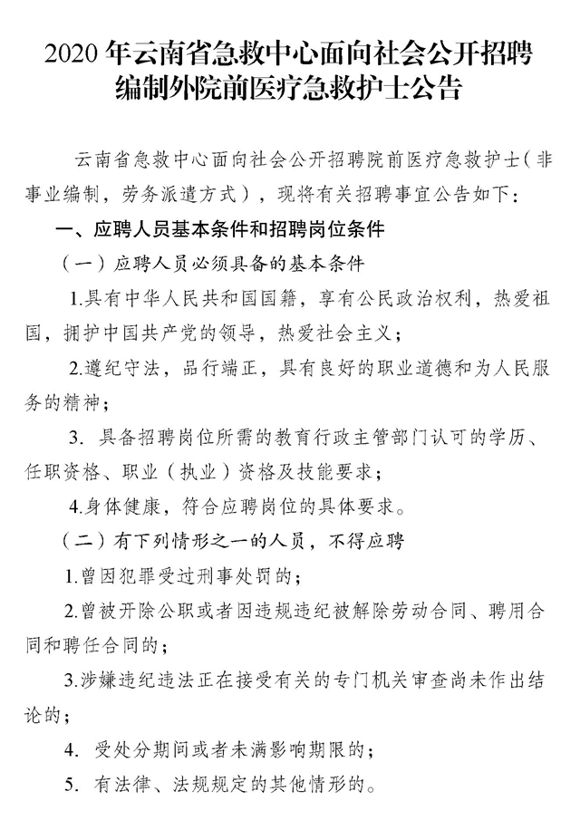 云南省急救中心面向社會公開招聘